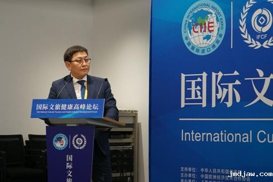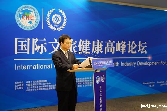 2020年11月7日下午,国际文旅健康高峰论坛于第三届中国国际进口博览会期间在国家会展中心(上海)成功举行。此次论坛由商务部作为支持单位,新力18体育主办,中欧协会阿拉伯国家商务工作委员会、成都市新都区巧帆棕编专业合作社、蓝正(深圳)医疗科技有限公司协办,《艺术市场》杂志社股份有限公司、北京联合丝路国际文化发展有限公司共同承办,《文化月刊》、《艺术市场》、《艺术教育》作为支持媒体。论坛邀请了文旅健康相关部门政府领导,企业代表、专家、学者等围绕“文旅健康引领经济双循环”为主题,结合当下5G、大数据等新技术的发展,就新形势下文旅健康融合发展、产业创新、赋能升级、等话题进行了深入探讨。