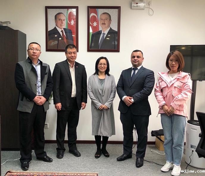 从左至右:中欧协会葡萄酒与烈酒分会会长白杨、中欧协会副秘书长孙喆、中欧协会副秘书长赵青、阿塞拜疆驻华商务代表顾问伊和?阿塔里扎德(Ikhtiyar Atalizade)、中欧协会国际健康产业部迟鸣寒