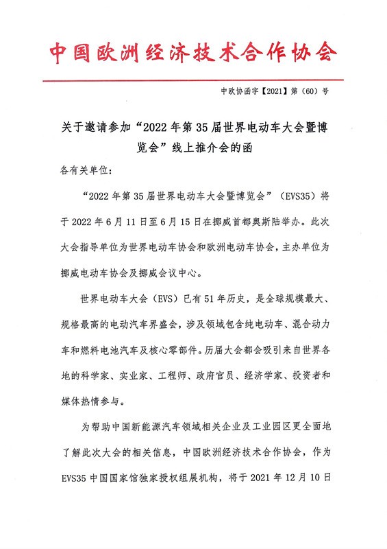 上一篇: 关于邀请组织参加2022第35届世界电动车大会暨博览会的函