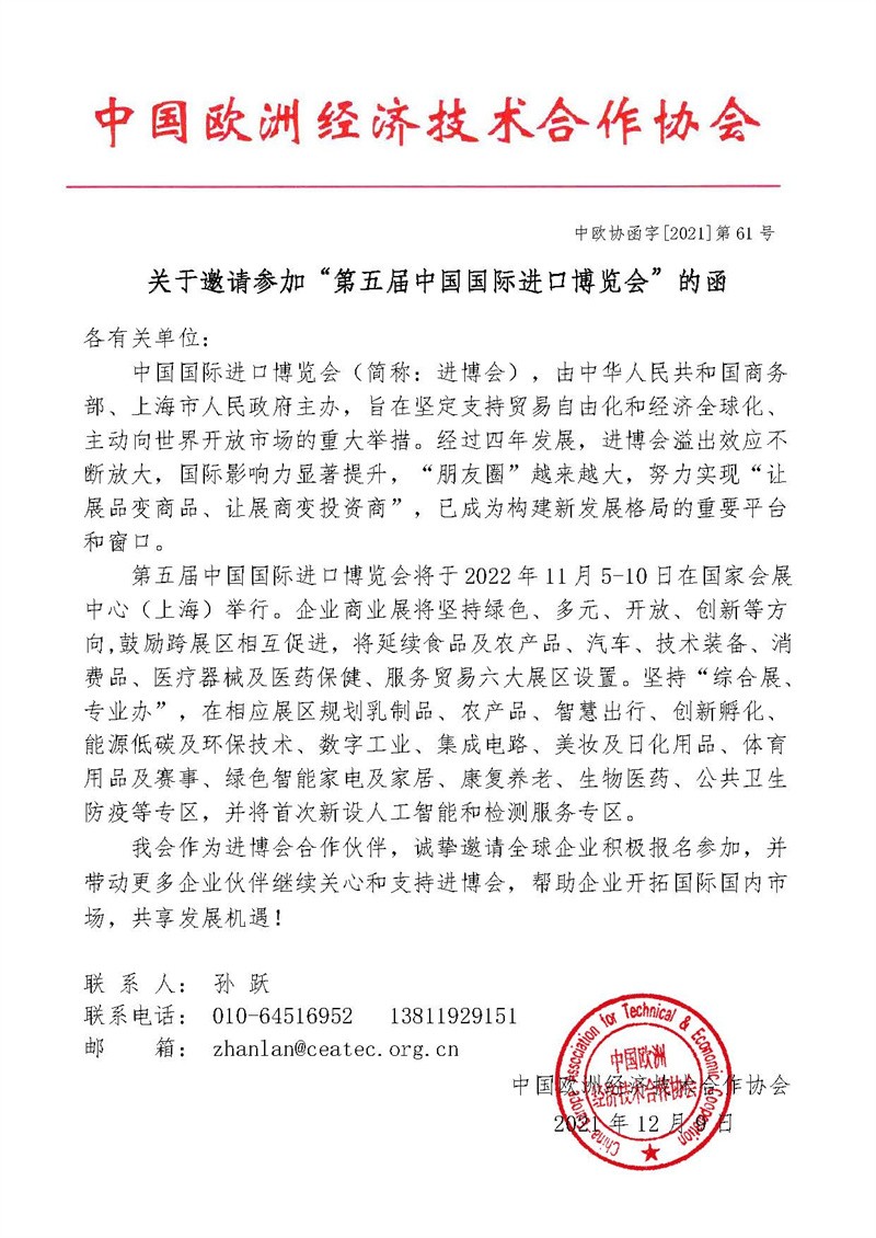 下一篇:关于邀请境外采购商参加第五届中国国际进口博览会的函