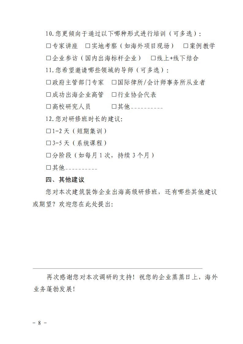 (五)请参会人员认真填写调查问卷,并发至指定邮箱zp88383138@126.com以便协会有针对性服务行业、服务企业。