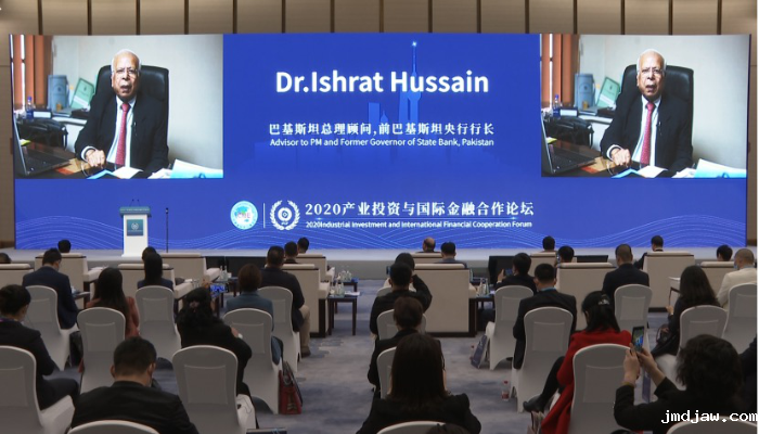 巴基斯坦总理顾问、前巴基斯坦央行行长伊什拉特·侯赛因通过视频发表致辞。他表示,中国和巴基斯坦拥有稳定长期的双边关系。中巴经济走廊作为一带一路重要的旗舰项目,将中国和南亚紧密联系起来,用中国先进的技术和经济发展经验,结合巴基斯坦的劳动力和辐射的广阔市场,辅助以中国巴基斯坦双边货币互换协议,将为区域性稳定的金融合作奠定坚实的基础。
