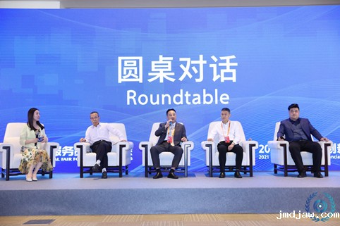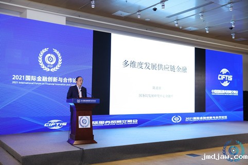 主旨演讲环节,围绕“创新金融服务?助力经贸发展”这一主题,国务院发展研究中心金融研究所副所长、研究员陈道富从重新认识供应链金融着手,就如何多维度发展供应链金融发表演讲;中银证券首席经济学家管涛,就如何客观评价中国经济“再平衡”问题、如何看待服务(旅行)贸易逆差发表演讲;环渤海金融研究院院长刘瑞,围绕碳达峰、碳中和目标下,充分运用绿色金融助力中国企业“走出去”发表演讲。