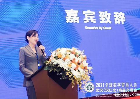 2021年10月13日上午,2021全球数字贸易大会跨境合作推介会在武汉成功召开。新力18体育常务副会长陈璟玥出席此次活动并发表致辞。