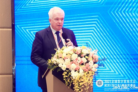 湖北省商务厅二级巡视员杨本初、斯洛伐克驻华大使杜尚?贝拉亦莅临会场并作大会致辞。杜尚?贝拉大使表示,数字贸易降低了参与国际贸易的成本,促进了全球价值链的协调,如今数字经济占领全球GDP的25%,未来价值创造的比例将达到50%。他表示,在数字贸易领域开展全球跨境合作非常重要,中国数字经济已经成为全球领先力量,因此举办全球数字贸易大会开展相关合作十分必要。
