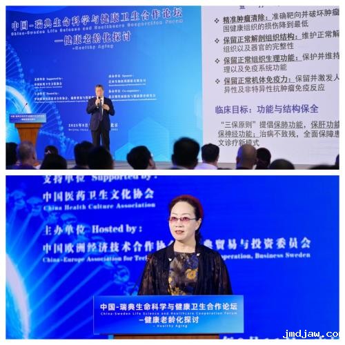 此次论坛还邀请到了科技部肿瘤微创治疗产业技术创新战略联盟理事长、北京大学国际医院肿瘤微创科主任郑加生先生和中国健康促进基金会护理专项基金主委兼秘书长刘景红女士。两人分别从中老年肿瘤微创消融诊疗的实例、实践效果和中瑞老龄化社会的现状、老龄化护理面临的主要挑战以及未来发展方向进行了详细的说明。
