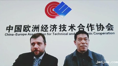 ▲中欧协会独联体国家商务工作委员会会长李龙先生(右)与翻译部主任米佳(左)