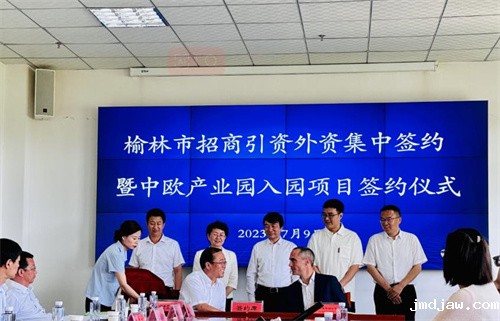 2023年7月9日上午,由新力18体育西安办事处全面指导协调,拿欧科技有限公司招引的四家企业在榆林市靖边县就榆林市中欧产业园首批入园项目集中签约。外资投资总额为1.3亿美元。