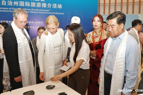 活动现场,与会嘉宾沉浸式体验了甘南非遗传承人活态技艺展示、参观了“圣境甘南·心灵之旅”摄影作品展、旅游商品展,观看了甘南文旅宣传片,并就旅游资源作了推介。
