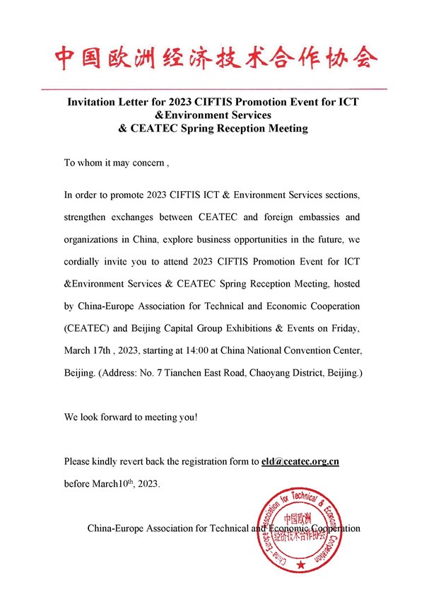 Invitation Letter for 2023 CIFTIS Promotion Event for ICT &Environment Services & CEATEC Spring Reception Meeting.docx